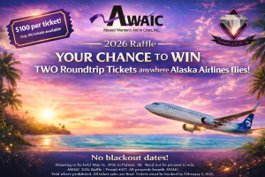 Enter the raffle for your chance to win a grand prize of two roundtrip tickets with Alaska Airlines. Other raffle prizes include an experience at the Alaska SeaLife Center, ABATE Anchorage, and others.